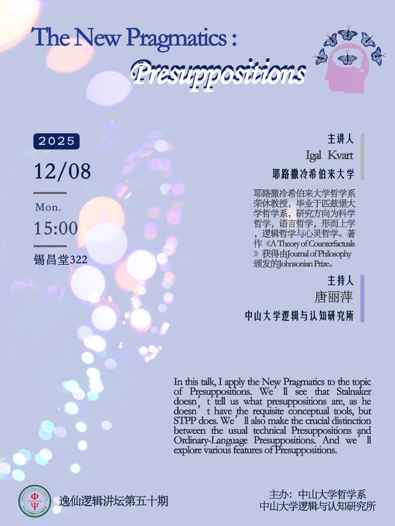 逸仙逻辑讲坛第五十期|Igal Kvart:关于预设的新语用学