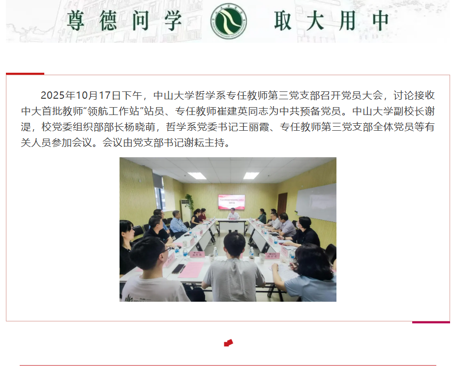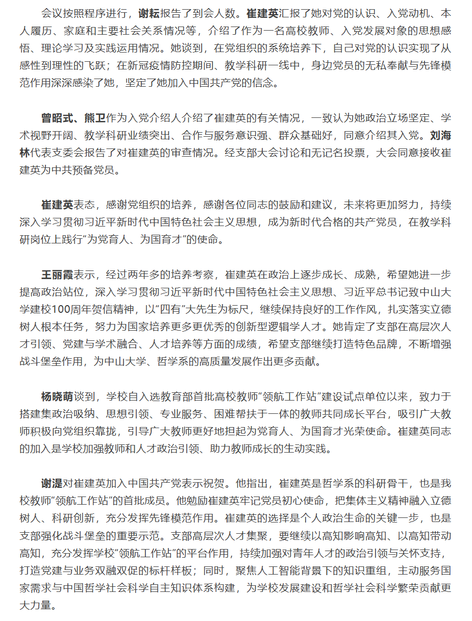 谢湜副校长列席我系崔建英副教授入党通表会