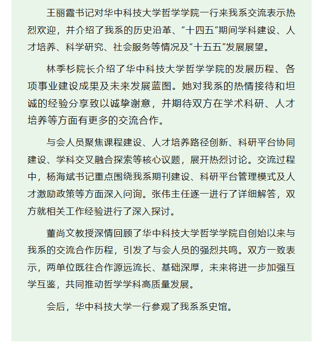 华中科技大学哲学学院一行来我系交流访问