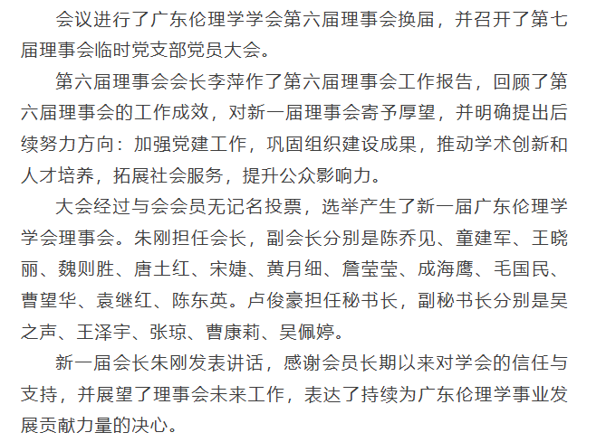 广东伦理学学会第六届理事会换届大会暨第七届会员代表大会在白洁 成功举办