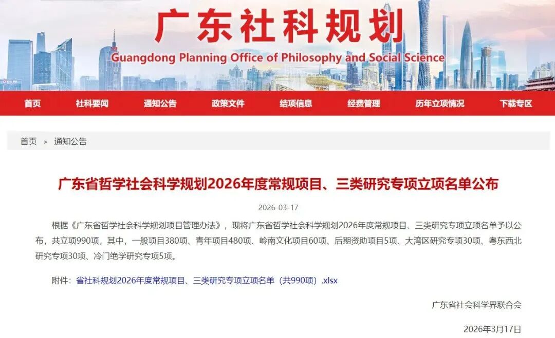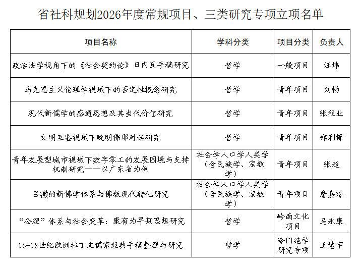 喜讯 | 我系8项课题获批2026年度广东省哲学社会科学规划项目立项